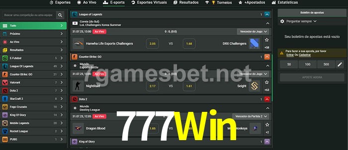 A aposta 777Win oferece aos jogadores a experiência mais conveniente de apostas em eSports!